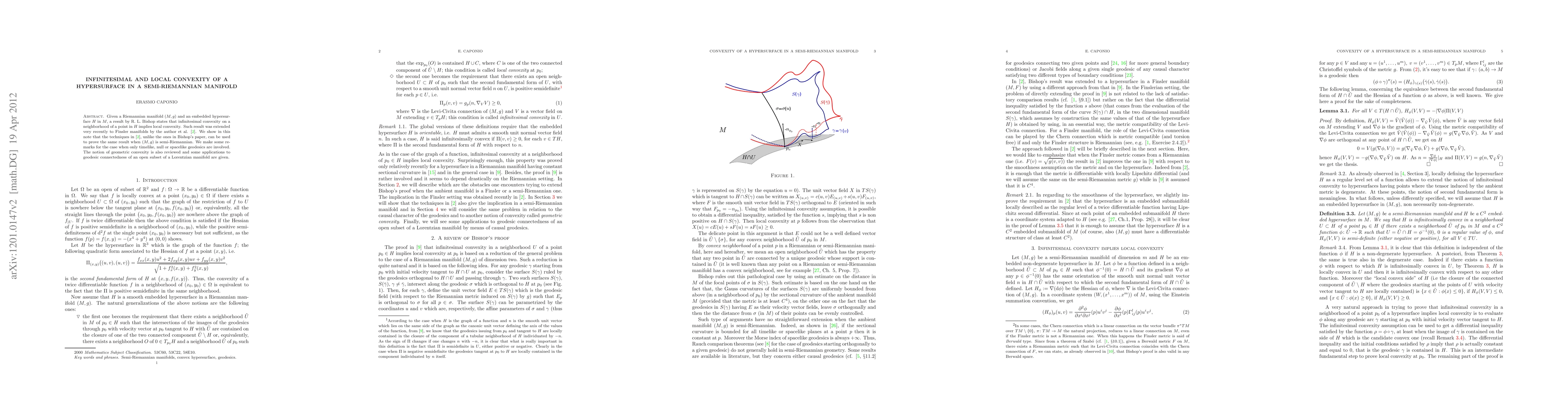 This paper demonstrates that infinitesimal convexity on a hypersurface in a semi-Riemannian manifold implies local convexity, extending a known result from Riemannian to semi-Riemannian contexts. It also discusses applications to geodesic connectedness in Lorentzian manifolds.