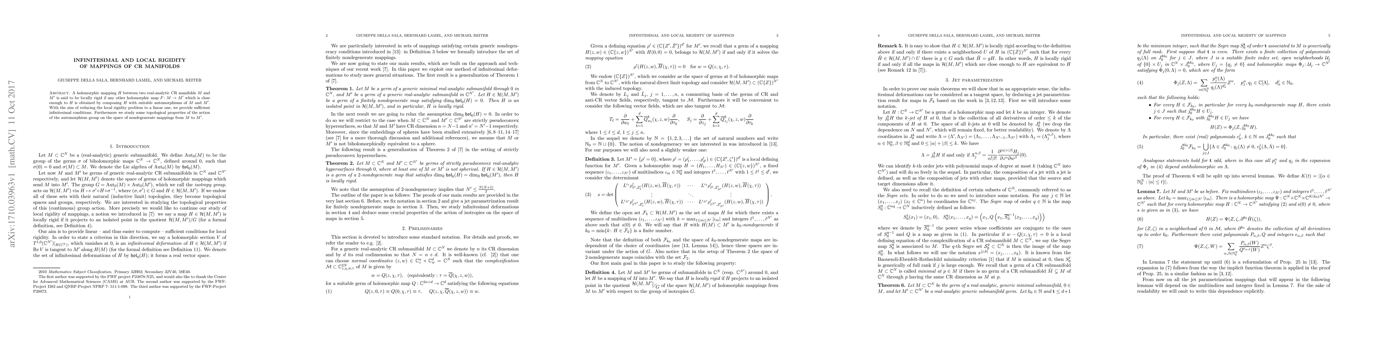 A holomorphic mapping $H$ between two real-analytic CR manifolds $M$ and $M'$ is said to be locally rigid if any other holomorphic map $F\colon M \to M'$ which is close enough to $H$ is obtained by composing $H$ with suitable automorphisms of $M$ and $M'$. With the aim of reducing the local rigidity problem to a linear one, we provide sufficient infinitesimal conditions. Furthermore we study some topological properties of the action of the automorphism group on the space of nondegenerate mappings from $M$ to $M'$.