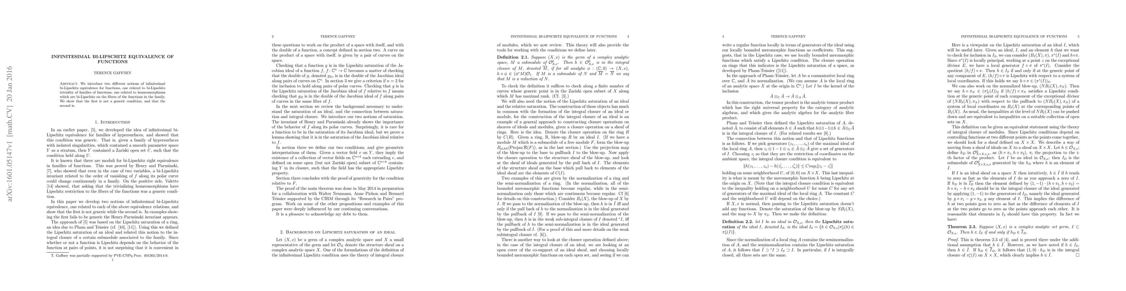 Summary: This paper defines two types of infinitesimal bi-Lipschitz equivalence for functions, one tied to bi-Lipschitz triviality and the other to homeomorphisms. It demonstrates that the first type is not a typical condition, while the second is more prevalent.