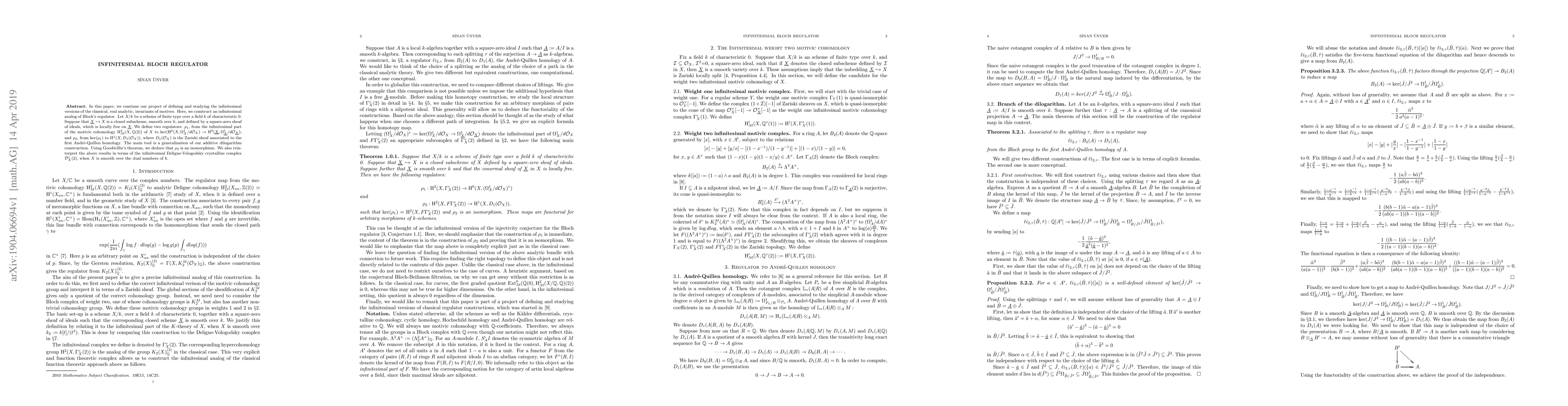 Researchers define an infinitesimal analog of Bloch's regulator for schemes over fields of characteristic 0, connecting it to motivic cohomology and crystalline complexes.