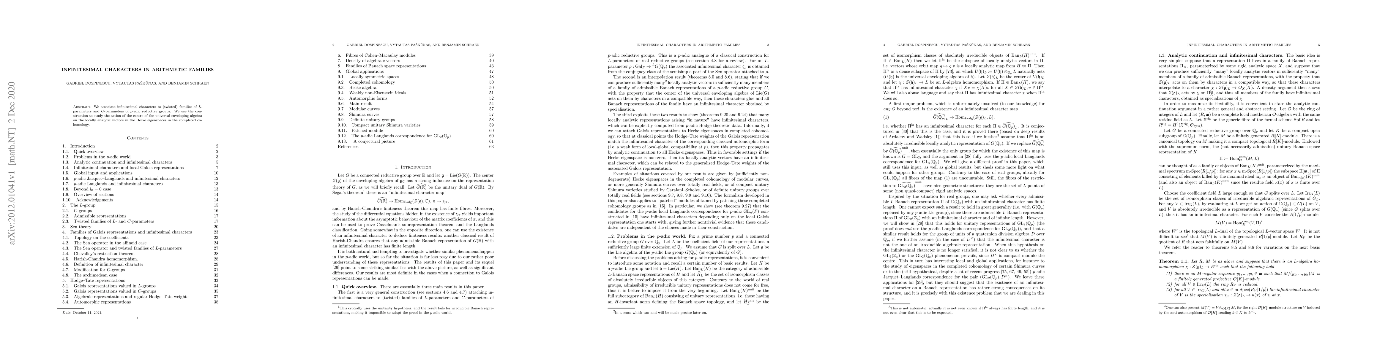 Researchers associate infinitesimal characters with twisted families of L-parameters and C-parameters in reductive groups to study the action of the center on Hecke eigenspaces in completed cohomology.