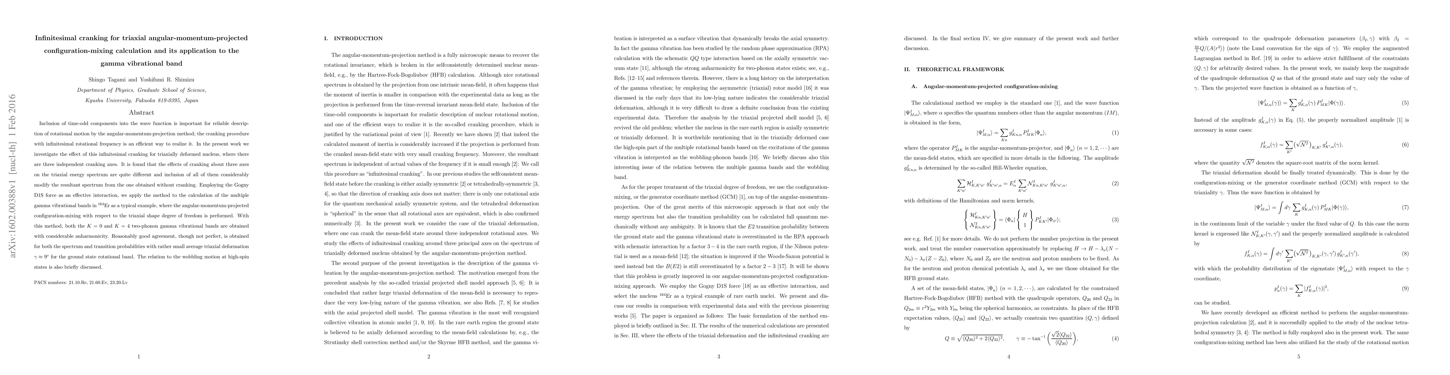 This paper introduces an infinitesimal cranking method for triaxial nuclei to include time-odd components in the wave function, significantly modifying the energy spectrum. The method is applied to calculate gamma vibrational bands in $^{164}$Er, showing good agreement with experimental data and discussing its relation to wobbling motion.