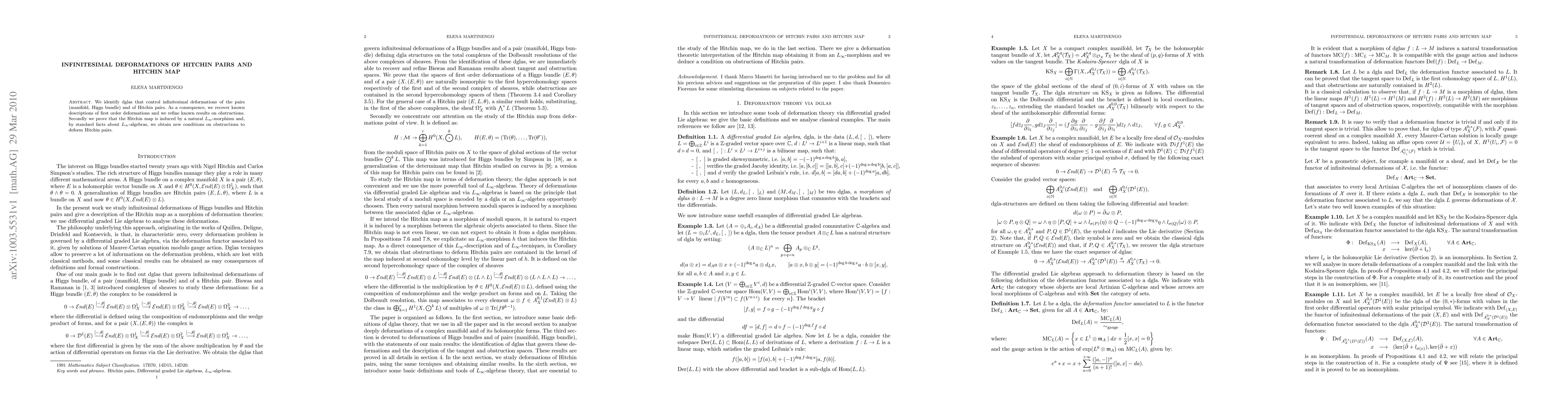This paper identifies differential graded Lie algebras (dglas) governing infinitesimal deformations of (manifold, Higgs bundle) pairs and Hitchin pairs, refines existing results on deformation obstructions, and demonstrates that the Hitchin map arises from a natural L-infinity morphism, leading to new insights on deformation obstructions.