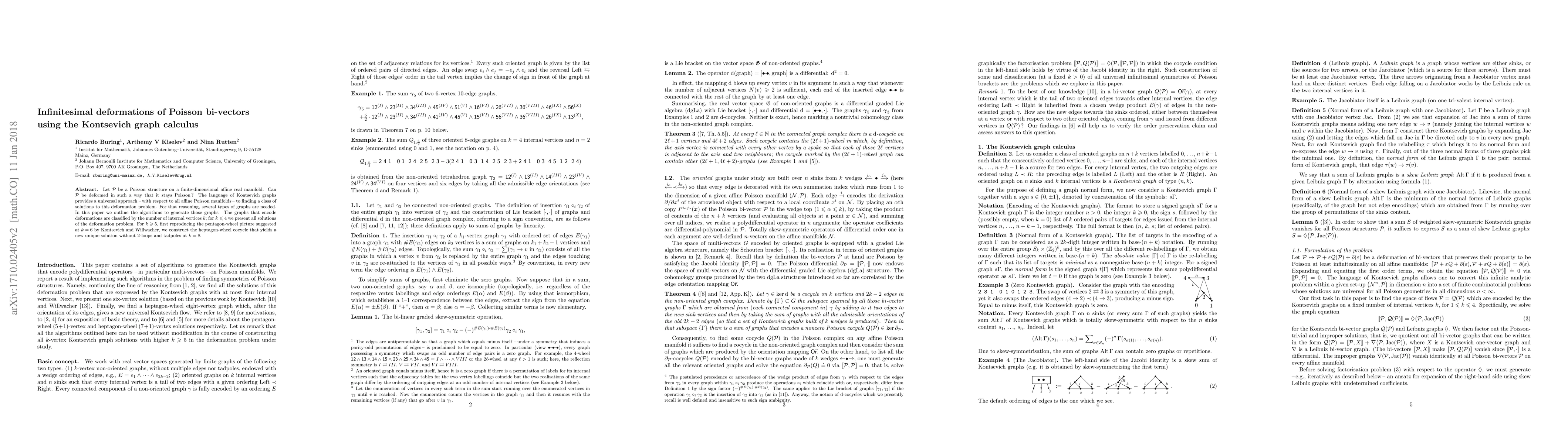 Let $P$ be a Poisson structure on a finite-dimensional affine real manifold. Can $P$ be deformed in such a way that it stays Poisson? The language of Kontsevich graphs provides a universal approach -- with respect to all affine Poisson manifolds -- to finding a class of solutions to this deformation problem. For that reasoning, several types of graphs are needed. In this paper we outline the algorithms to generate those graphs. The graphs that encode deformations are classified by the number of internal vertices $k$; for $k \leqslant 4$ we present all solutions of the deformation problem. For $k \geqslant 5$, first reproducing the pentagon-wheel picture suggested at $k=6$ by Kontsevich and Willwacher, we construct the heptagon-wheel cocycle that yields a new unique solution without $2$-loops and tadpoles at $k=8$.