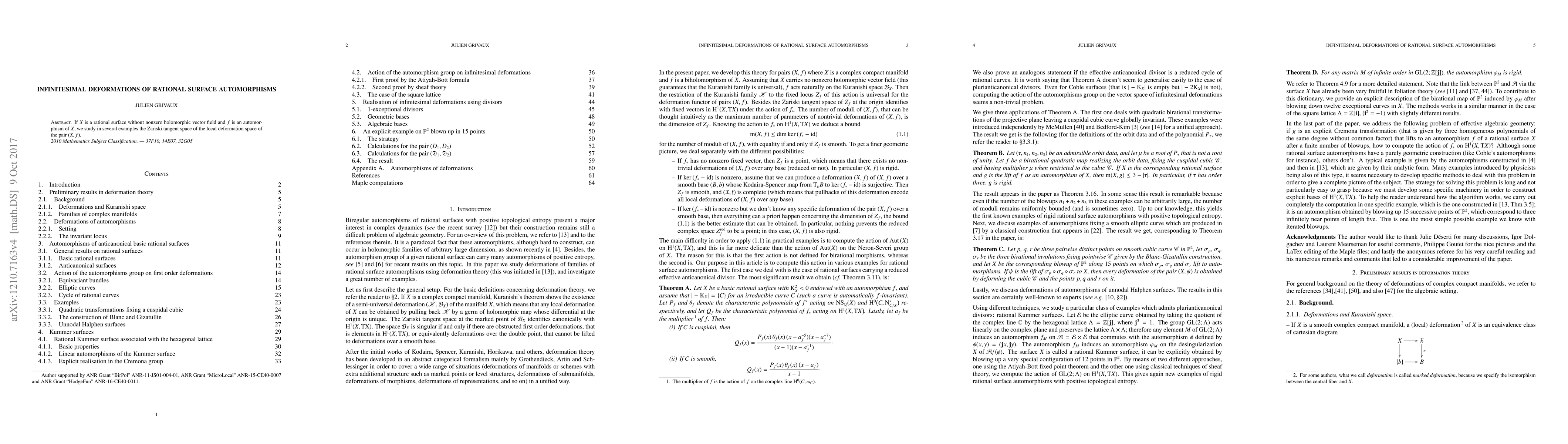 If $X$ is a rational surface without nonzero holomorphic vector field and $f$ is an automorphism of $X$, we study in several examples the Zariski tangent space of the local deformation space of the pair $(X, f)$.