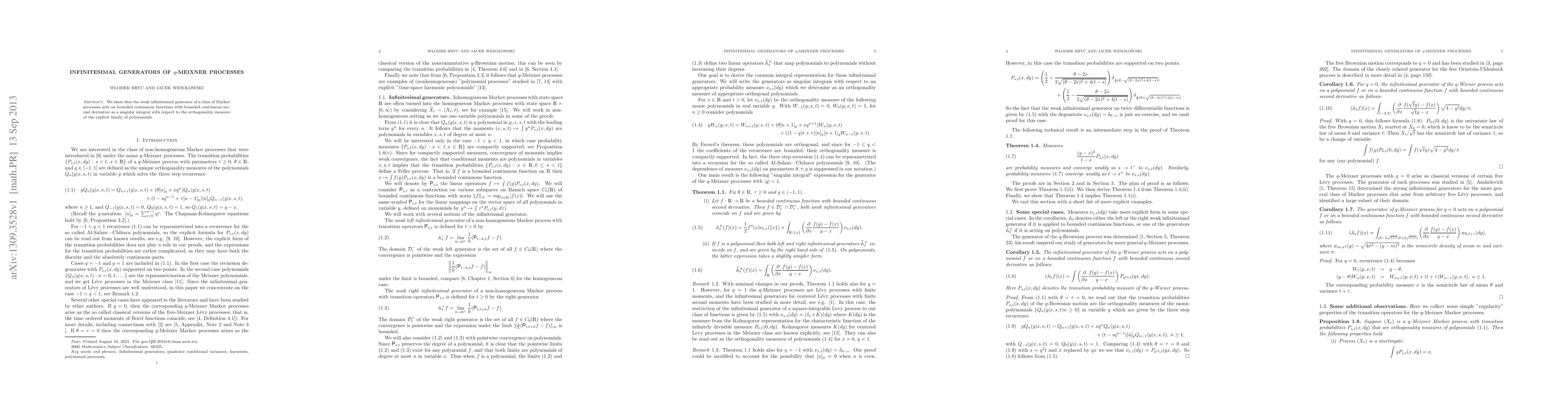 Summary: This paper demonstrates that the weak infinitesimal generator of a specific class of Markov processes functions as a singular integral operator relative to the orthogonality measure associated with a particular family of q-Meixner polynomials, acting on bounded continuous functions with bounded continuous second derivatives.
