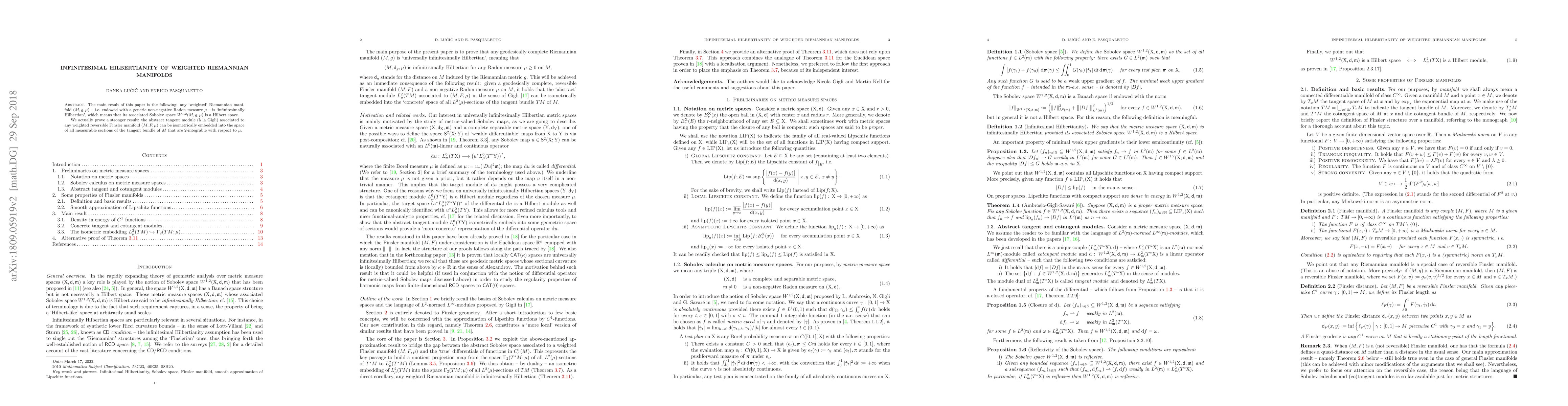 A recent research paper proves that weighted Riemannian manifolds have an associated Sobolev space that is a Hilbert space, and this result can be strengthened to an isometric embedding of the abstract tangent module into the space of 2-integrable sections of the tangent bundle.