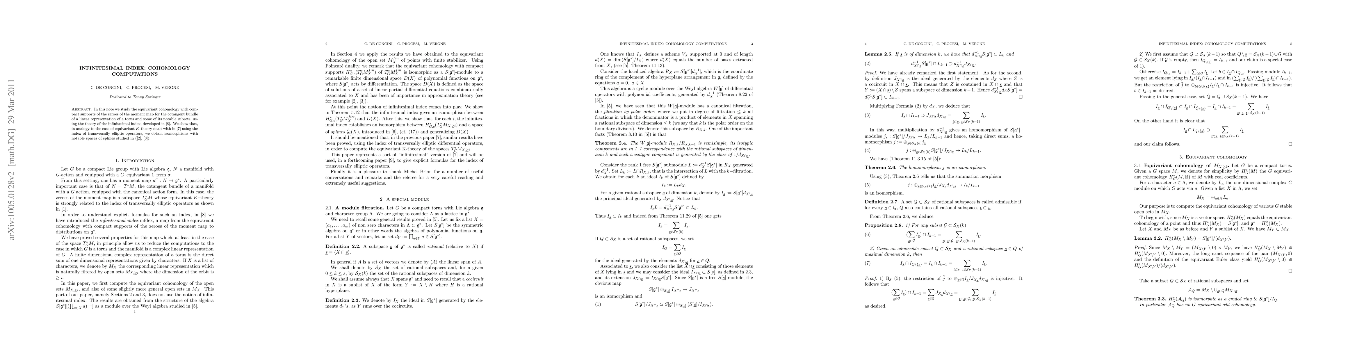 This paper computes equivariant cohomology groups using the infinitesimal index concept from spline theory, improving upon earlier work and describing these groups via spaces of distributions. The new version includes significant enhancements to the methodology.