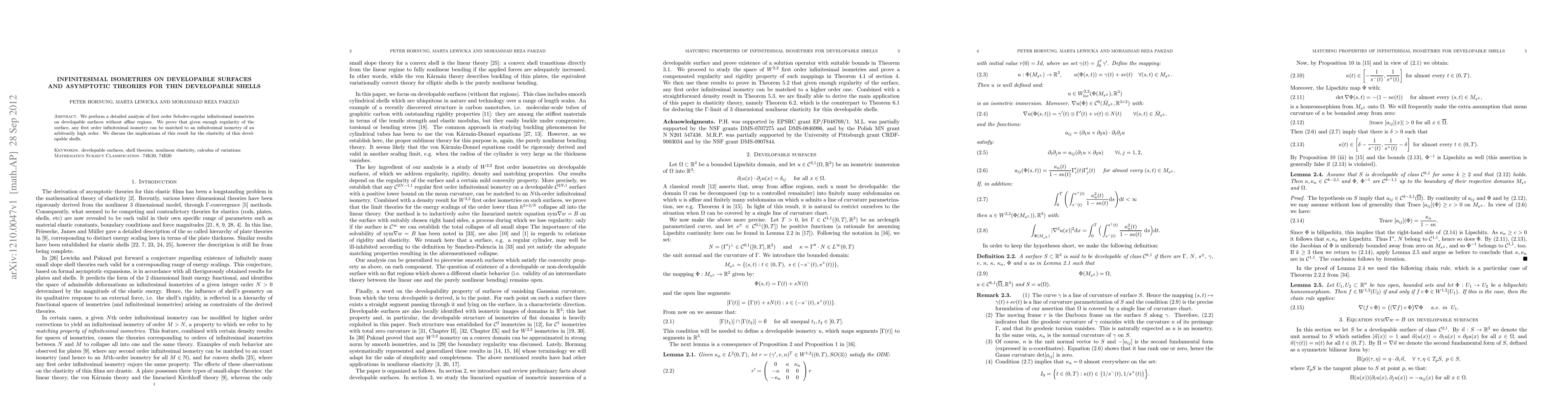 This paper analyzes first-order infinitesimal isometries on developable surfaces, proving that higher-order infinitesimal isometries can be matched given sufficient surface regularity. The findings have implications for the elasticity of thin developable shells.