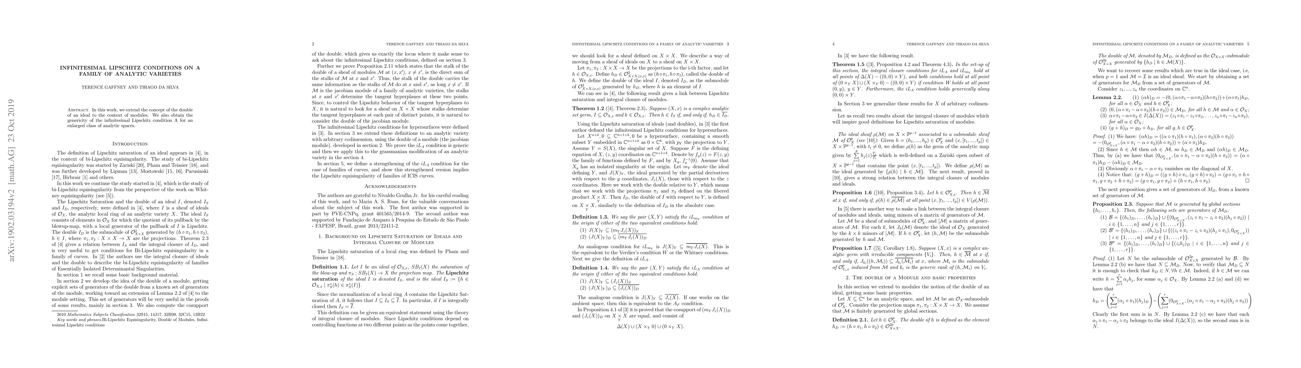 This paper extends the notion of the double of an ideal to modules and demonstrates the genericity of the infinitesimal Lipschitz condition A for a broader class of analytic spaces. The findings enhance the understanding of analytic varieties under infinitesimal Lipschitz conditions.
