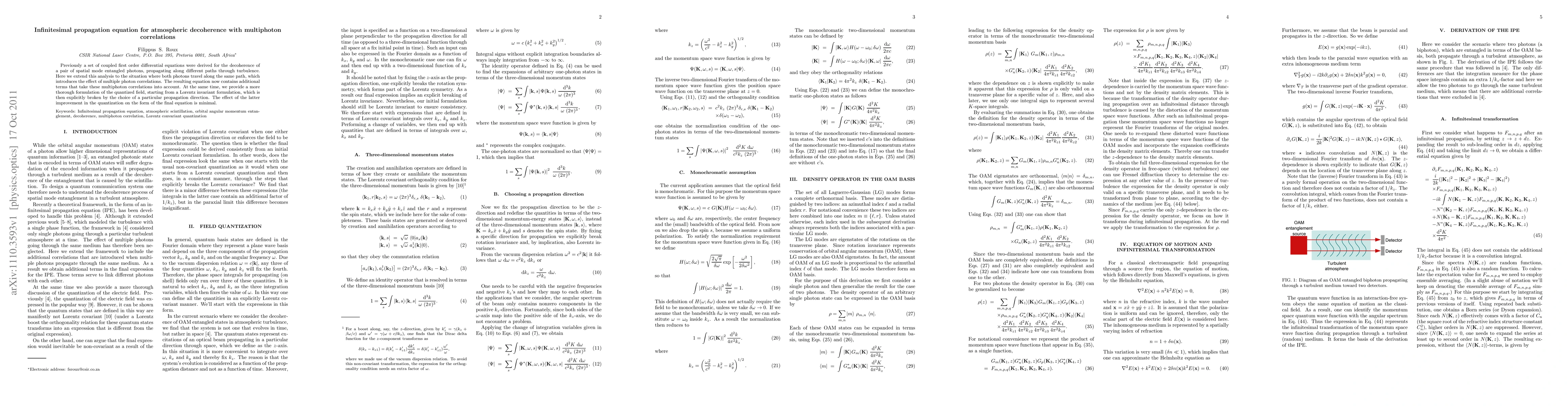Researchers developed an infinitesimal propagation equation to study atmospheric decoherence in single-mode entangled photons traveling the same path, accounting for multiphoton correlations.