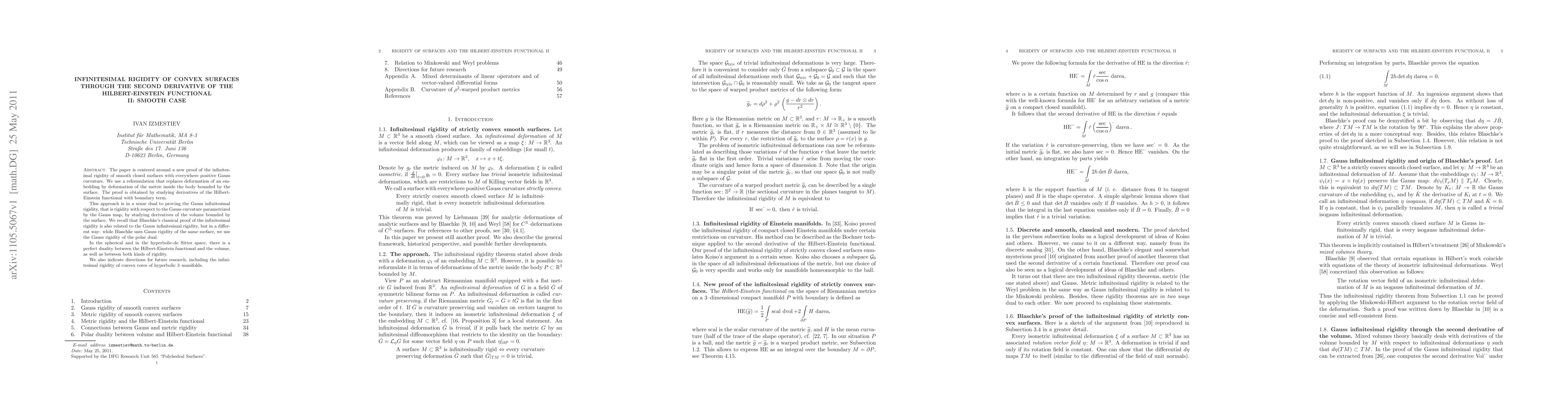 The paper is centered around a new proof of the infinitesimal rigidity of smooth closed surfaces with everywhere positive Gauss curvature. We use a reformulation that replaces deformation of an embedding by deformation of the metric inside the body bounded by the surface. The proof is obtained by studying derivatives of the Hilbert-Einstein functional with boundary term. This approach is in a sense dual to proving the Gauss infinitesimal rigidity, that is rigidity with respect to the Gauss curvature parametrized by the Gauss map, by studying derivatives of the volume bounded by the surface. We recall that Blaschke's classical proof of the infinitesimal rigidity is also related to the Gauss infinitesimal rigidity, but in a different way: while Blaschke uses Gauss rigidity of the same surface, we use the Gauss rigidity of the polar dual. In the spherical and in the hyperbolic-de Sitter space, there is a perfect duality between the Hilbert-Einstein functional and the volume, as well as between both kinds of rigidity. We also indicate directions for future research, including the infinitesimal rigidity of convex cores of hyperbolic 3--manifolds.