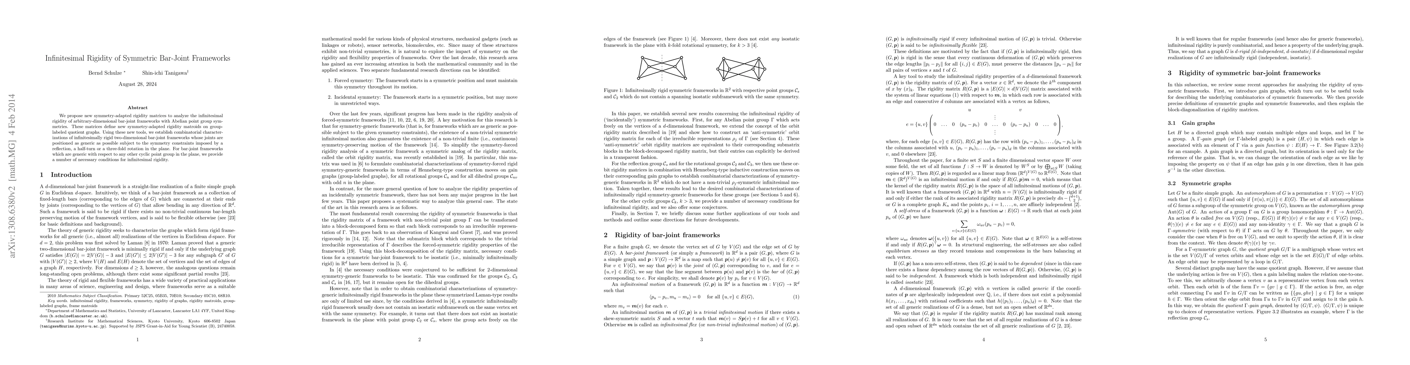 We propose new symmetry-adapted rigidity matrices to analyze the infinitesimal rigidity of arbitrary-dimensional bar-joint frameworks with Abelian point group symmetries. These matrices define new symmetry-adapted rigidity matroids on group-labeled quotient graphs. Using these new tools, we establish combinatorial characterizations of infinitesimally rigid two-dimensional bar-joint frameworks whose joints are positioned as generic as possible subject to the symmetry constraints imposed by a reflection, a half-turn or a three-fold rotation in the plane. For bar-joint frameworks which are generic with respect to any other cyclic point group in the plane, we provide a number of necessary conditions for infinitesimal rigidity.