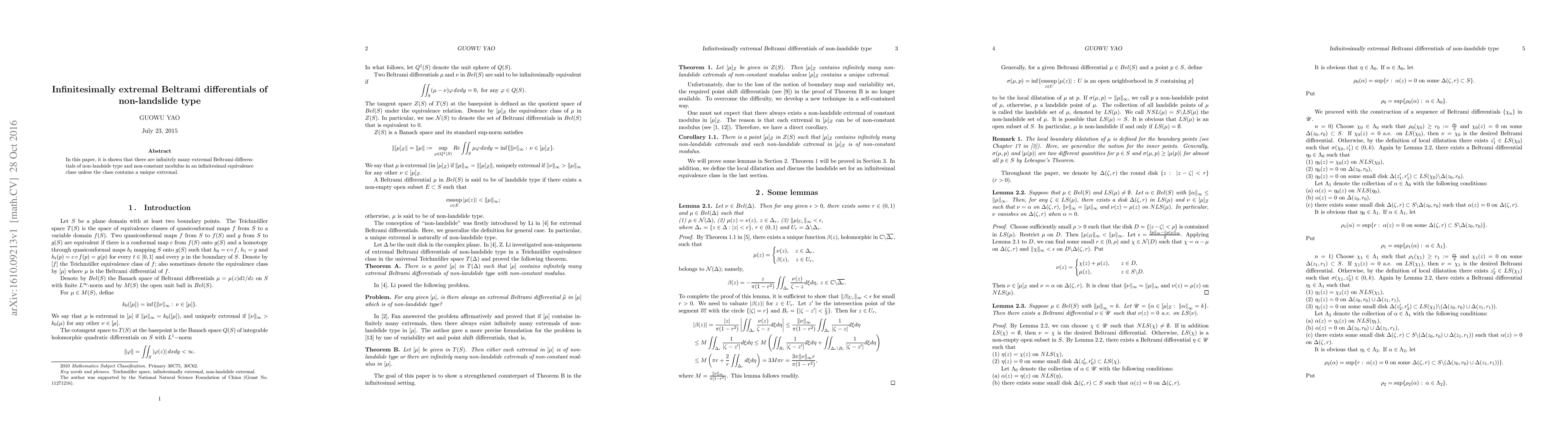In this paper, it is shown that there are infinitely many extremal Beltrami differentials of non-landside type and non-constant modulus in an infinitesimal equivalence class unless the class contains a unique extremal.