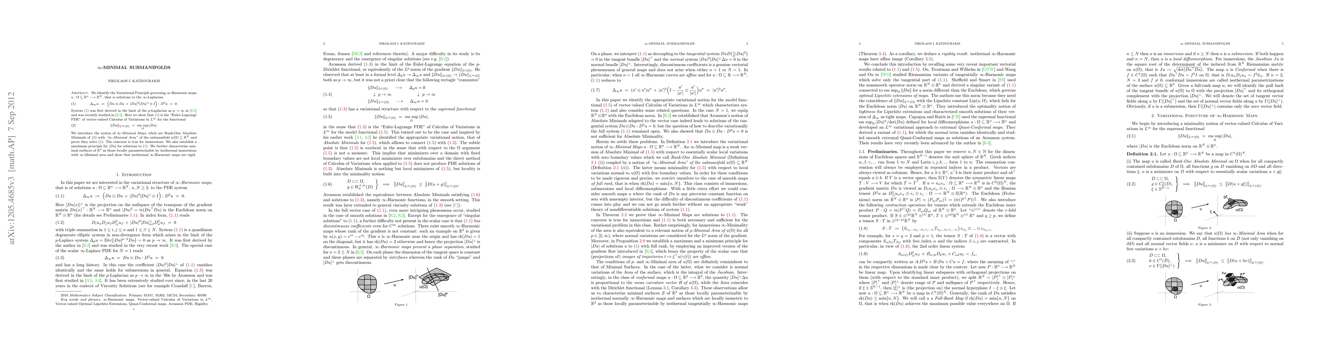 Researchers discover a new principle governing infinity-Harmonic maps, which are solutions to the Infinity-Laplacian, and establish that isothermal immersions with infinity-minimal area are minimal surfaces of 3-space.