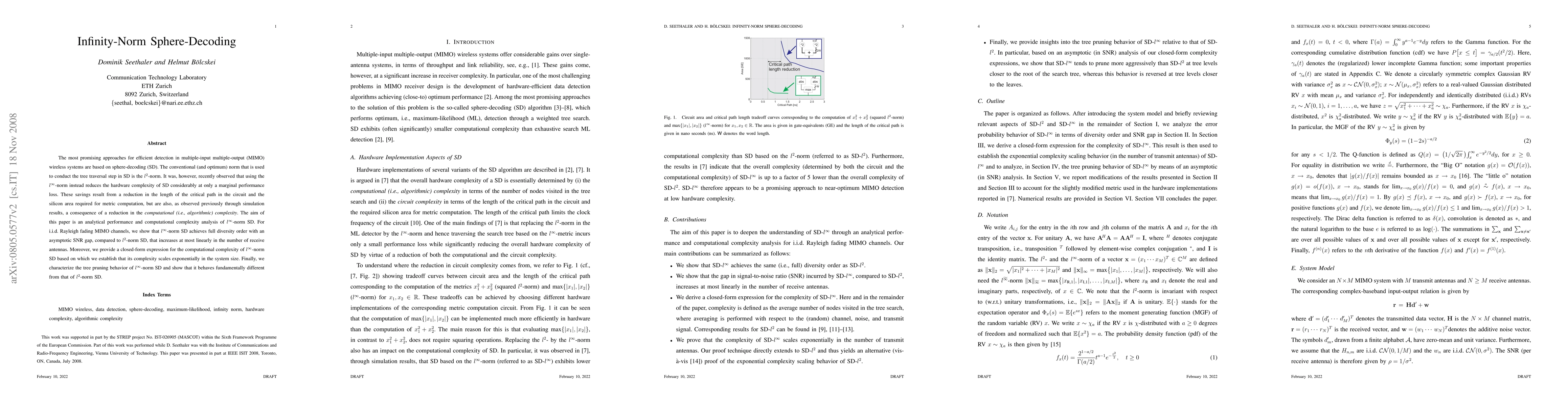This paper analyzes the performance and computational complexity of sphere-decoding using the l-infinity norm for MIMO wireless systems, showing that it maintains full diversity order with minimal performance loss compared to l-2 norm sphere-decoding, while significantly reducing hardware complexity and computational effort.