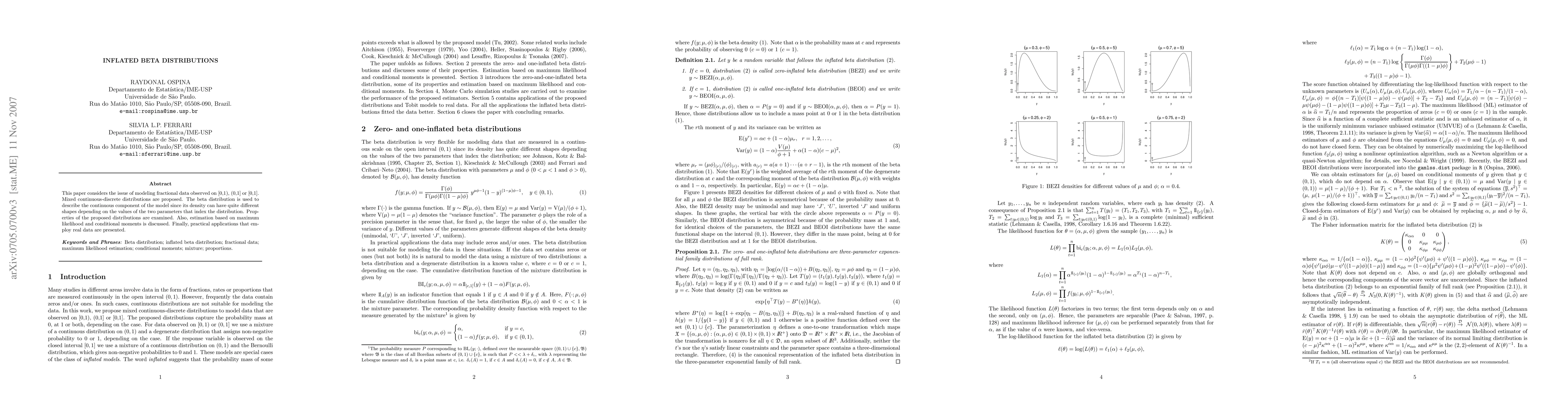 This paper considers the issue of modeling fractional data observed in the interval [0,1), (0,1] or [0,1]. Mixed continuous-discrete distributions are proposed. The beta distribution is used to describe the continuous component of the model since its density can have quite diferent shapes depending on the values of the two parameters that index the distribution. Properties of the proposed distributions are examined. Also, maximum likelihood and method of moments estimation is discussed. Finally, practical applications that employ real data are presented.