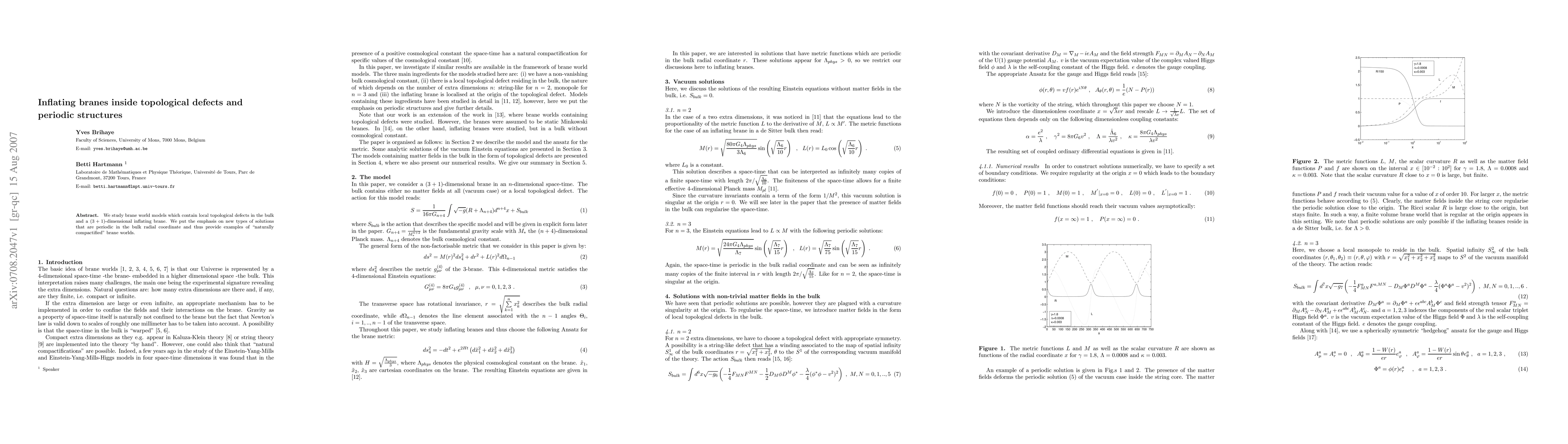 This paper explores brane world models with local topological defects and a (3+1)-dimensional inflating brane, focusing on new periodic solutions that naturally compactify the bulk, offering a novel approach to brane world compactification.