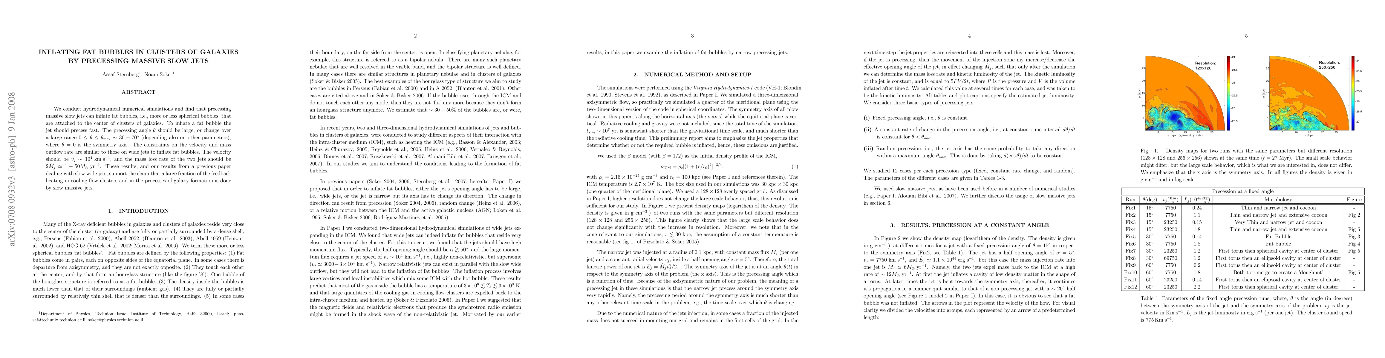 This paper uses hydrodynamical simulations to show that precessing massive slow jets can inflate spherical "fat bubbles" at the centers of galaxy clusters. The jets must precess rapidly with a large precession angle to achieve this inflation, supporting the theory that slow massive jets play a significant role in heating feedback in cooling flow clusters and galaxy formation.