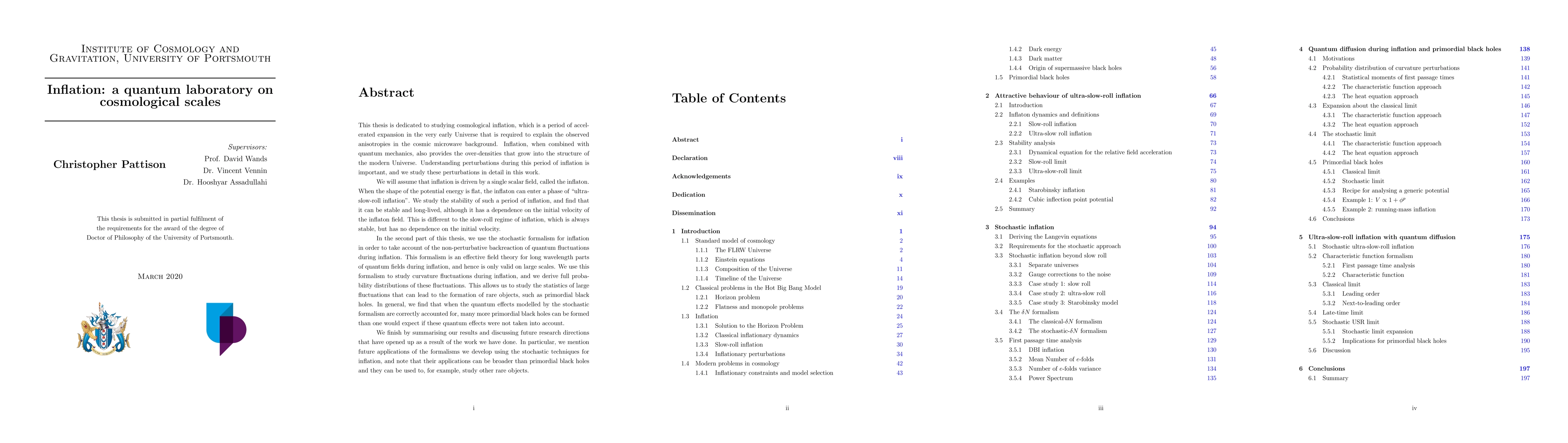 This thesis is dedicated to studying cosmological inflation, which is a period of accelerated expansion in the very early Universe that is required to explain the observed anisotropies in the cosmic microwave background. Inflation, when combined with quantum mechanics, also provides the over-densities that grow into the structure of the modern Universe. Understanding perturbations during this period of inflation is important, and we study these perturbations in detail in this work. We will assume that inflation is driven by a single scalar field, called the inflaton. When the shape of the potential energy is flat, the inflaton can enter a phase of "ultra-slow-roll inflation". We study the stability of such a period of inflation, and find that it can be stable and long-lived, although it has a dependence on the initial velocity of the inflaton field. This is different to the slow-roll regime of inflation, which is always stable, but has no dependence on the initial velocity. In the second part of this thesis, we use the stochastic formalism for inflation in order to take account of the non-perturbative backreaction of quantum fluctuations during inflation. We use this formalism to study curvature fluctuations during inflation, and we derive full probability distributions of these fluctuations. This allows us to study the statistics of large fluctuations that can lead to the formation of rare objects, such as primordial black holes. In general, we find that when the quantum effects modelled by the stochastic formalism are correctly accounted for, many more primordial black holes can be formed than one would expect if these quantum effects were not taken into account.