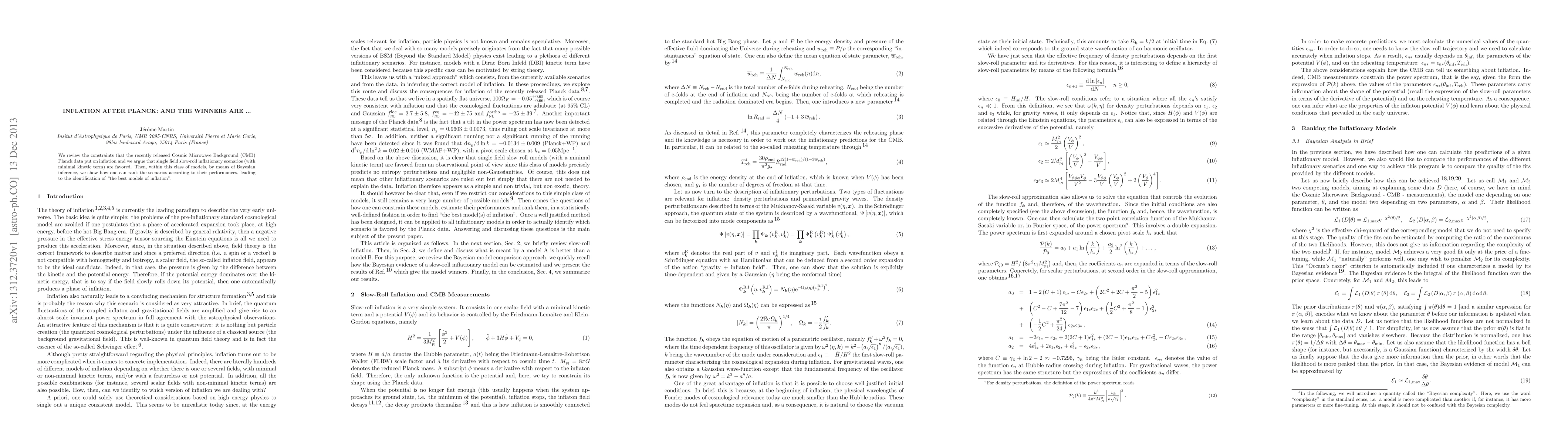 We review the constraints that the recently released Cosmic Microwave Background (CMB) Planck data put on inflation and we argue that single field slow-roll inflationary scenarios (with minimal kinetic term) are favored. Then, within this class of models, by means of Bayesian inference, we show how one can rank the scenarios according to their performances, leading to the identification of ``the best models of inflation''.