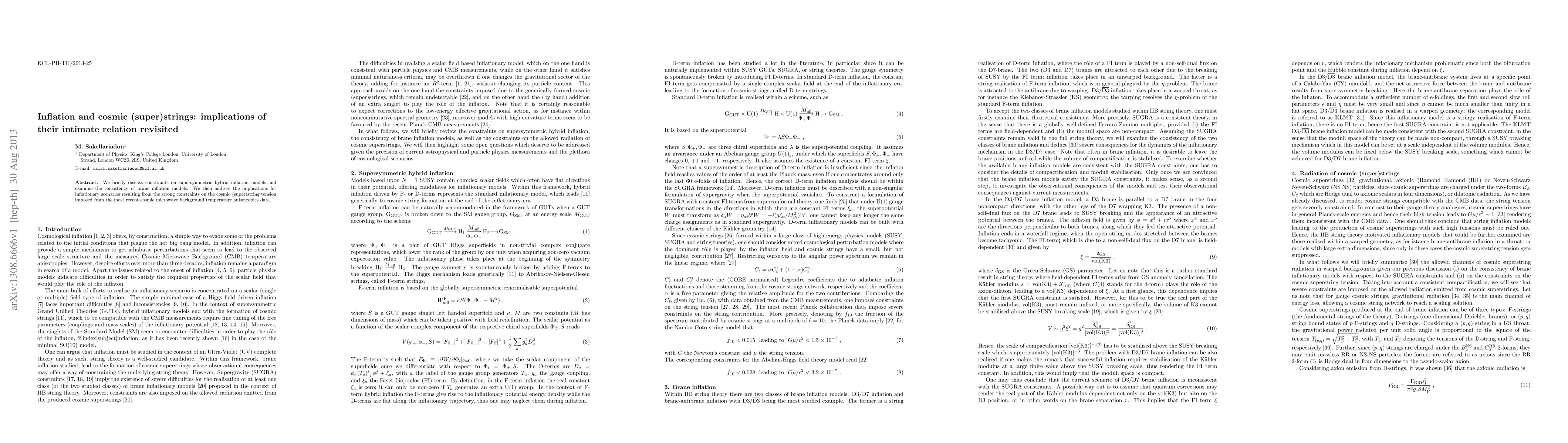 We briefly discuss constraints on supersymmetric hybrid inflation models and examine the consistency of brane inflation models. We then address the implications for inflationary scenarios resulting from the strong constraints on the cosmic (super)string tension imposed from the most recent cosmic microwave background temperature anisotropies data.