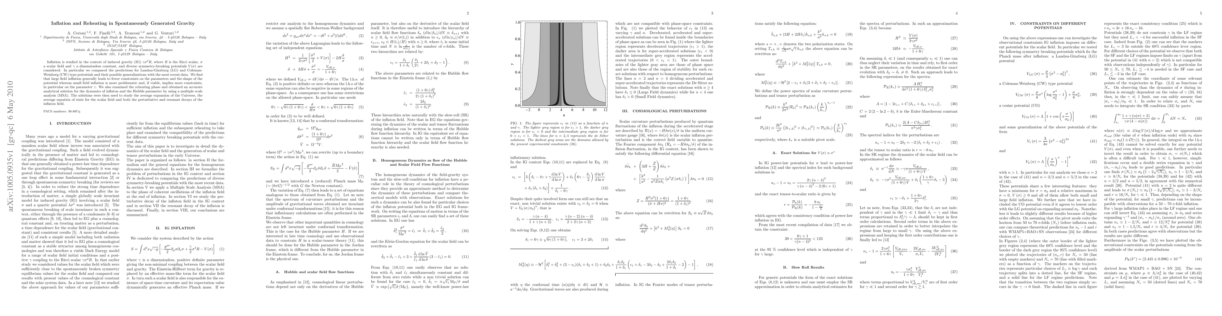 This paper investigates inflation within the framework of induced gravity, comparing predictions from Landau-Ginzburg and Coleman-Weinberg potentials against recent observational data. It finds that large field inflation imposes fewer constraints on parameters, while small field inflation, if viable, imposes more constraints, particularly on the constant $\gamma$. The study also analyzes the reheating phase, providing an analytical solution for the dynamics of the inflaton and Hubble parameter.