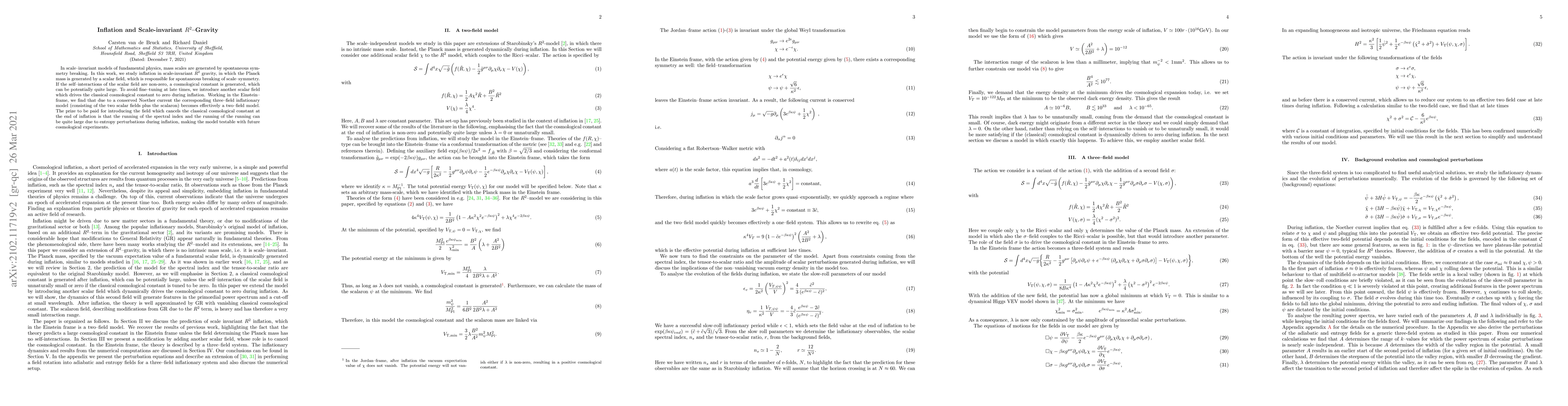 This paper explores inflation within the framework of scale-invariant $R^2$ gravity, where a scalar field generates the Planck mass and induces spontaneous symmetry breaking. The study introduces a second scalar field to cancel a potentially large cosmological constant, simplifying the model to an effective two-field system. However, the model's testability is challenged by significant running of the spectral index due to entropy perturbations during inflation.