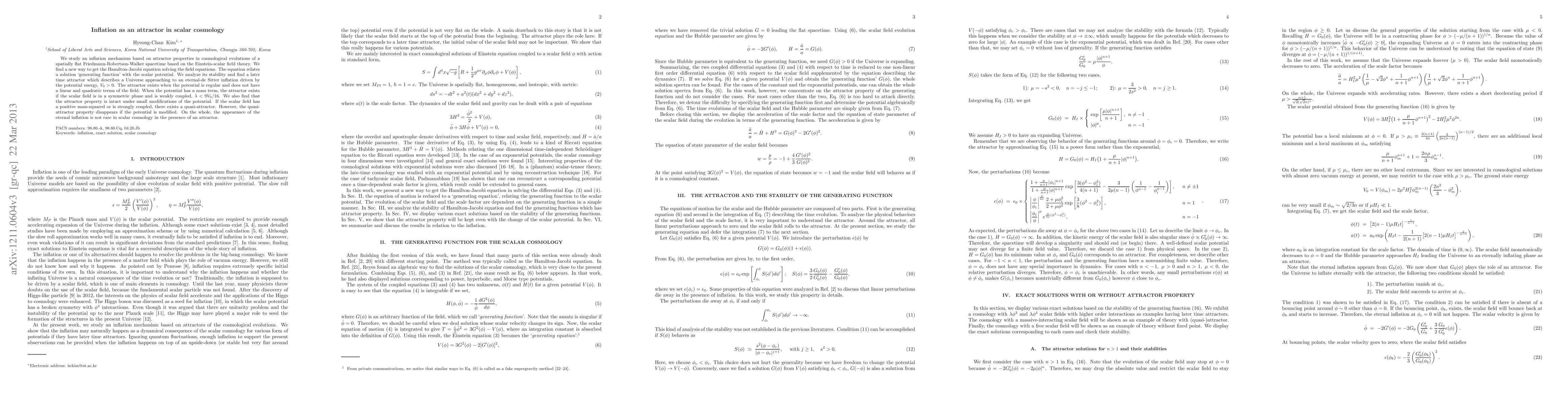This paper explores an inflation mechanism in scalar cosmology where attractor properties lead to eternal-de Sitter inflation driven by potential energy. It introduces a new method to solve the Hamilton-Jacobi equation, revealing stability and the existence of an attractor under specific conditions on the scalar field potential.
