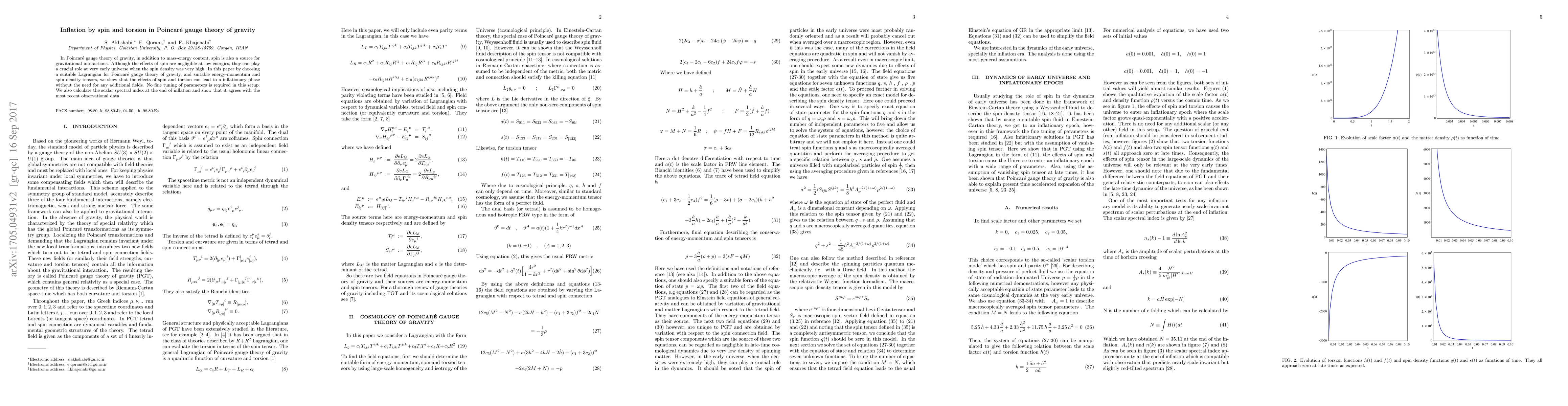 This paper explores inflation driven by spin and torsion in Poincare gauge theory of gravity, demonstrating that these effects can induce an inflationary phase without additional fields or parameter fine-tuning. It calculates the scalar spectral index, which aligns with recent observational data.