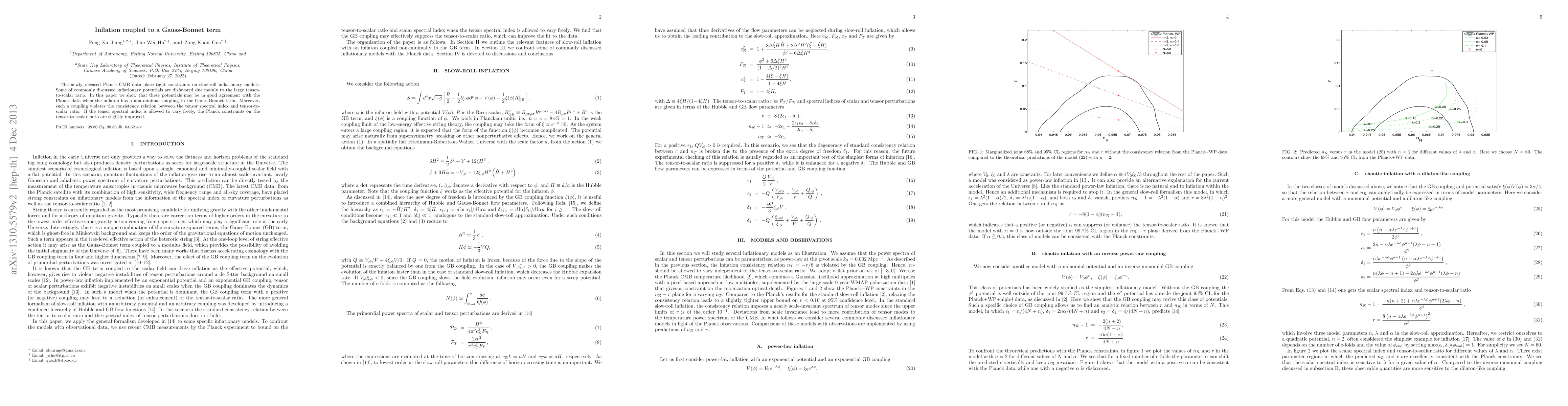 The newly released Planck CMB data place tight constraints on slow-roll inflationary models. Some of commonly discussed inflationary potentials are disfavored due mainly to the large tensor-to-scalar ratio. In this paper we show that these potentials may be in good agreement with the Planck data when the inflaton has a non-minimal coupling to the Gauss-Bonnet term. Moreover, such a coupling violates the consistency relation between the tensor spectral index and tensor-to-scalar ratio. If the tensor spectral index is allowed to vary freely, the Planck constraints on the tensor-to-scalar ratio are slightly improved.