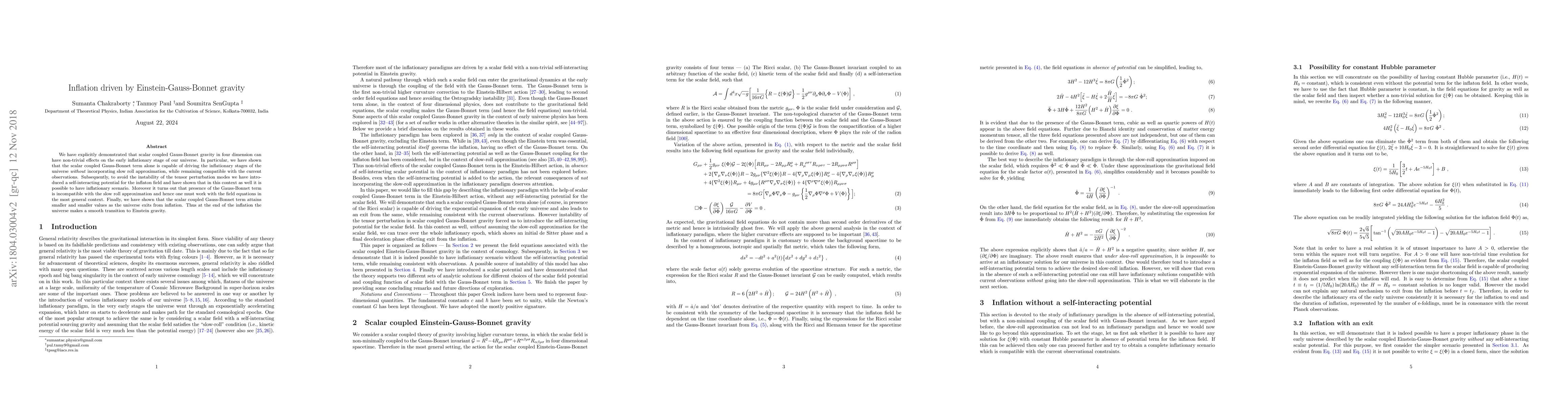 This research demonstrates that scalar coupled Gauss-Bonnet gravity can drive inflation without relying on the slow roll approximation, while incorporating a self-interacting potential for stability. It concludes that Gauss-Bonnet terms are incompatible with slow roll and lead to a smooth transition to Einstein gravity post-inflation.