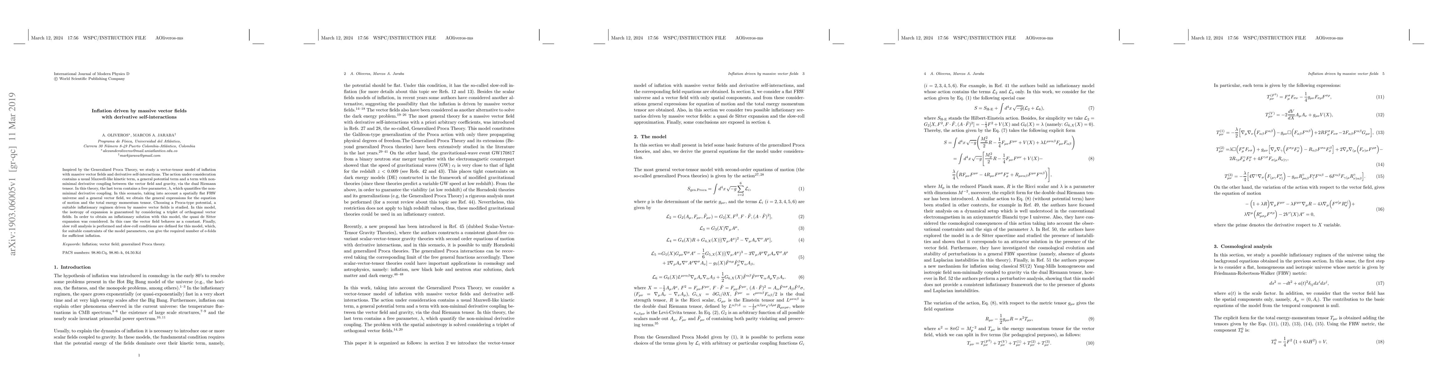This paper explores a vector-tensor inflationary model based on Generalized Proca Theory, featuring massive vector fields with derivative self-interactions and a non-minimal derivative coupling to gravity. It derives the equations of motion and analyzes the potential for an inflationary regime using a triplet of orthogonal vector fields under quasi de Sitter expansion, concluding that suitable parameter constraints can yield sufficient e-folds for inflation.