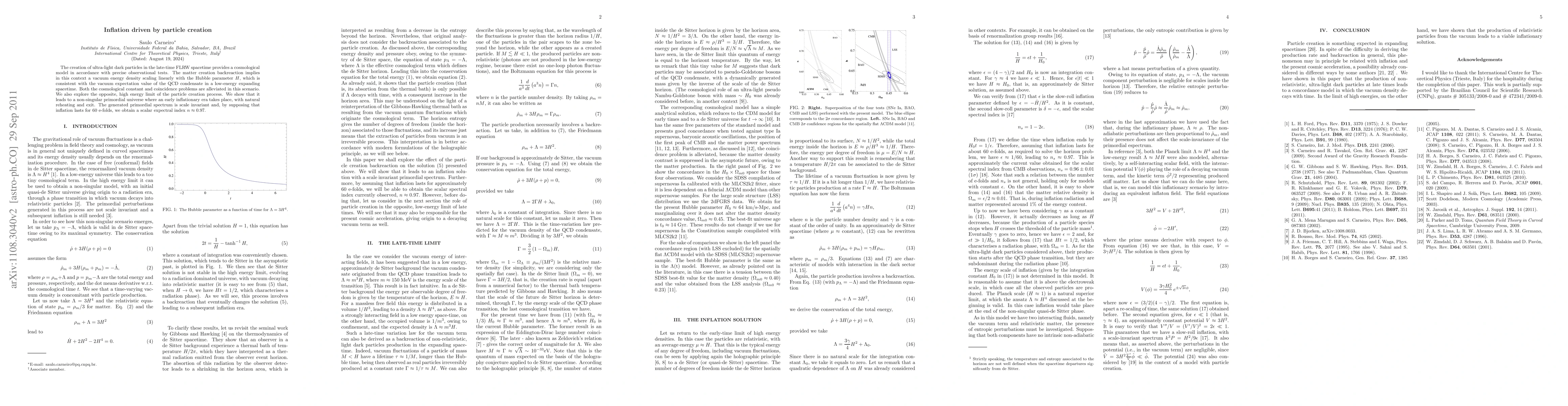 This paper proposes a cosmological model where inflation is driven by the creation of ultra-light dark particles, alleviating the cosmological constant and coincidence problems. It also explores high-energy limits leading to a non-singular primordial universe with natural reheating and a scale-invariant spectrum, achieving a scalar spectral index of n = 0.97 after 60 e-folds of inflation.