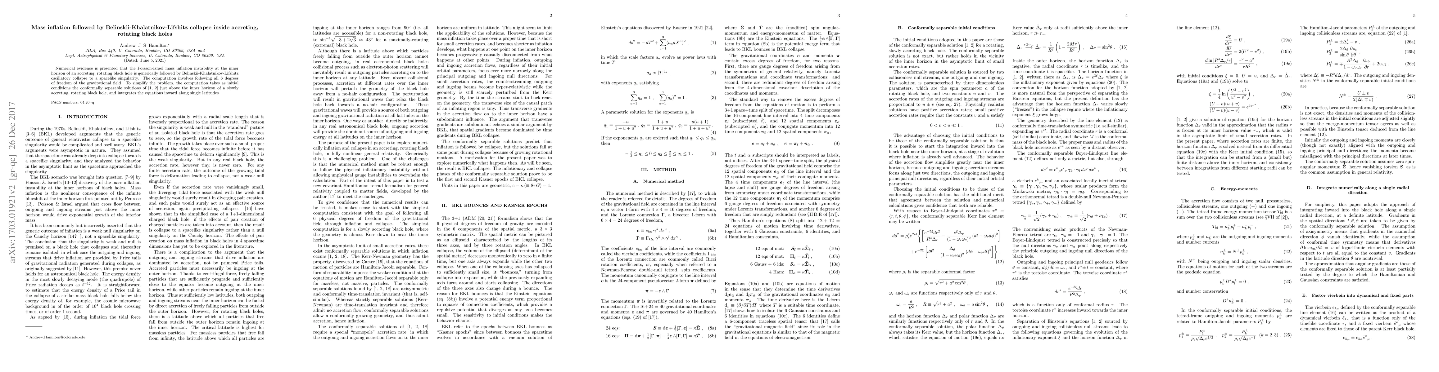 Numerical evidence is presented that the Poisson-Israel mass inflation instability at the inner horizon of an accreting, rotating black hole is generically followed by Belinskii-Khalatnikov-Lifshitz oscillatory collapse to a spacelike singularity. The computation involves following all 6 degrees of freedom of the gravitational field. To simplify the problem, the computation takes as initial conditions the conformally separable solutions of arXiv:1010.1269, arXiv:1010.1271 just above the inner horizon of a slowly accreting, rotating black hole, and integrates the equations inward along single latitudes.