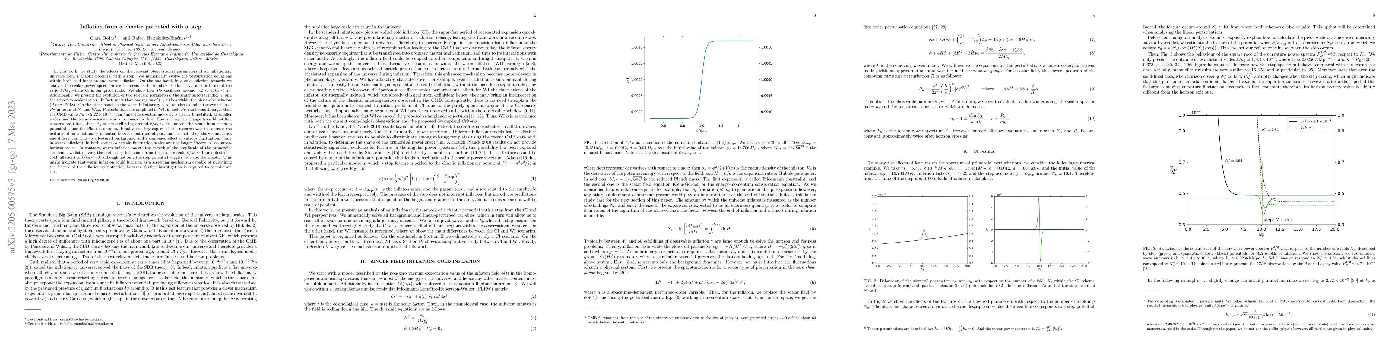 In this work, we study the effects on the relevant observational parameters of an inflationary universe from a chaotic potential with a step. We numerically evolve the perturbation equations within both cold inflation and warm inflation. On the one hand, in a cold inflation scenario we analyse the scalar power spectrum $P_{\mathcal{R}}$ in terms of the number of e-folds $N_{e}$, and in terms of the ratio $k/k_{0}$, where $k_{0}$ is our pivot scale. We show how $P_{\mathcal{R}}$ oscillates around $0.2< k/k_{0} < 20$. Additionally, we present the evolution of two relevant parameters: the scalar spectral index $n_\mathrm{s}$ and the tensor-to-scalar ratio $r$. In fact, more than one region of $(n_\mathrm{s},r)$ lies within the observable window (Planck 2018). On the other hand, in the warm inflationary case, we also examine the evolution of $P_{\mathcal{R}}$ in terms of $N_{e}$ and $k/k_{0}$. Perturbations are amplified in WI; in fact, $P_{\mathcal{R}}$ can be much larger than the CMB value $P_{\mathcal{R}}> 2.22\times 10^{-9}$. This time, the spectral index $n_\mathrm{s}$ is clearly blue-tilted, at smaller scales, and the tensor-to-scalar ratio $r$ becomes too low. However, $n_\mathrm{s}$ can change from blue-tilted towards red-tilted, since $P_{\mathcal{R}}$ starts oscillating around $k/k_{0}\sim 40$. Indeed, the result from the step potential skims the Planck contours. Finally, one key aspect of this research was to contrast the features of an inflationary potential between both paradigms, and, in fact, they show similarities and differences. Due to a featured background and a combined effect of entropy fluctuations (only in warm inflation), in both scenarios certain fluctuation scales are not longer ``freeze in'' on super-horizon scales.