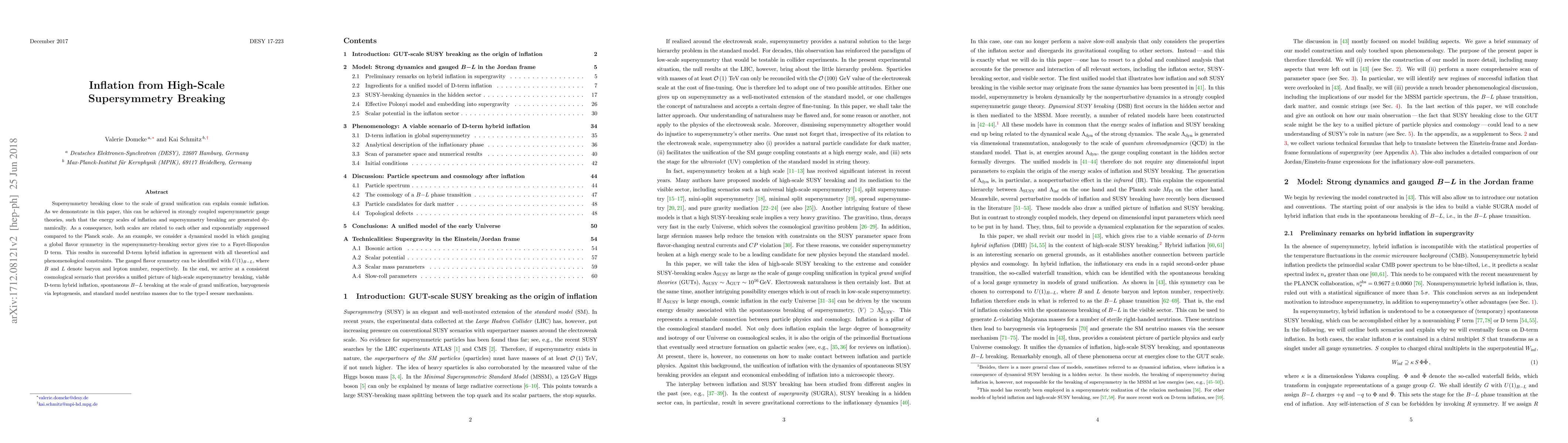 This paper proposes that inflation can arise from high-scale supersymmetry breaking in strongly coupled gauge theories, dynamically linking the scales of inflation and supersymmetry breaking. A model utilizing gauged global flavor symmetry, specifically U(1)_B-L, achieves successful D-term hybrid inflation and aligns with theoretical and phenomenological standards.