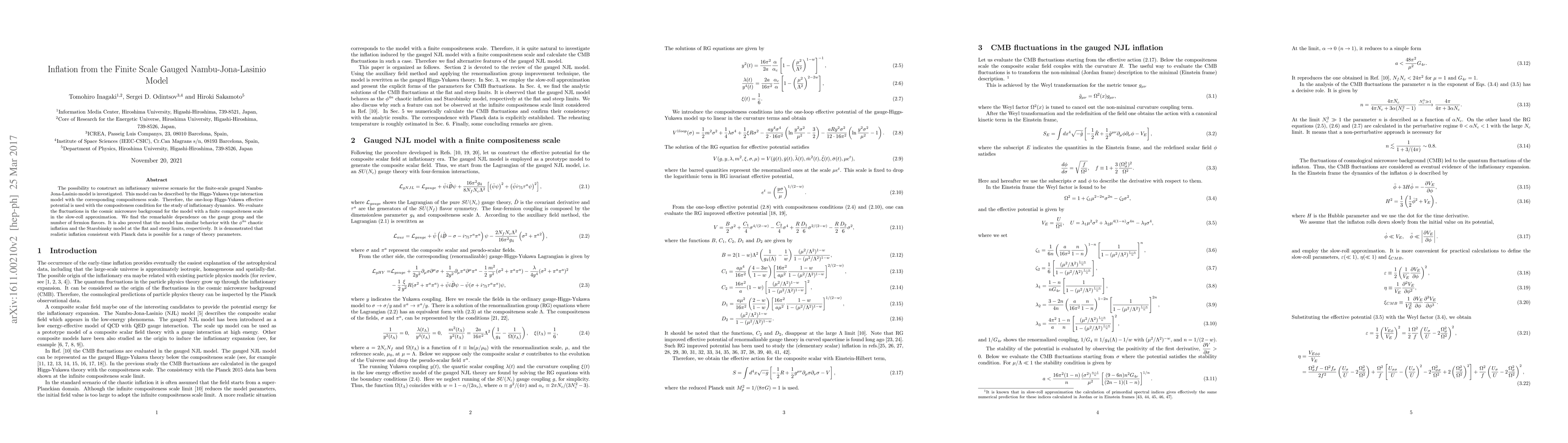 The possibility to construct an inflationary universe scenario for the finite-scale gauged Nambu-Jona-Lasinio model is investigated. This model can be described by the Higgs-Yukawa type interaction model with the corresponding compositeness scale. Therefore, the one-loop Higgs-Yukawa effective potential is used with the compositeness condition for the study of inflationary dynamics. We evaluate the fluctuations in the cosmic microwave background for the model with a finite compositeness scale in the slow-roll approximation. We find the remarkable dependence on the gauge group and the number of fermion flavors. It is also proved that the model has similar behavior with the $\phi^{4n}$ chaotic inflation and the Starobinsky model at the flat and steep limits, respectively. It is demonstrated that realistic inflation consistent with Planck data is possible for a range of theory parameters.