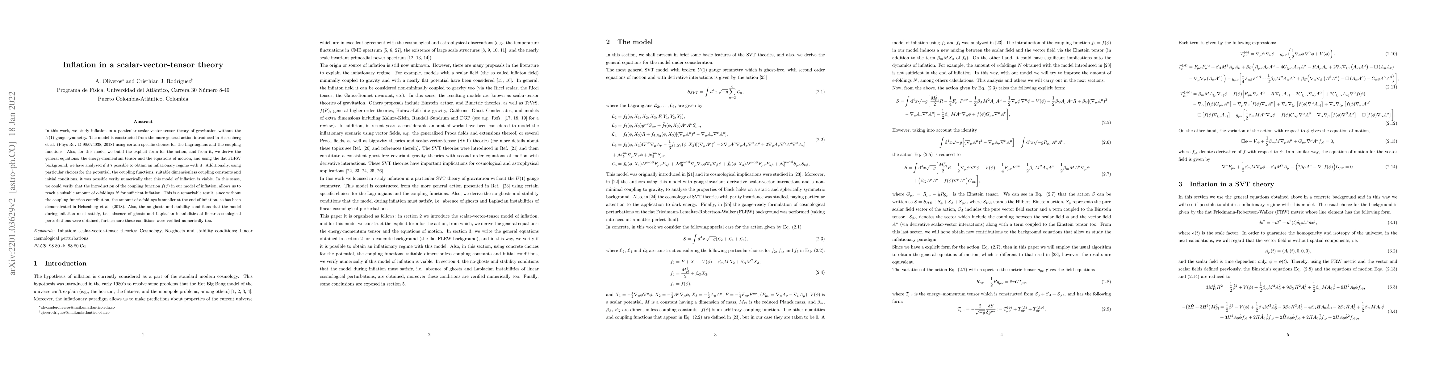 This study investigates inflation in a scalar-vector-tensor theory without U(1) gauge symmetry, demonstrating its viability through numerical analysis and satisfying key conditions for stable inflation.