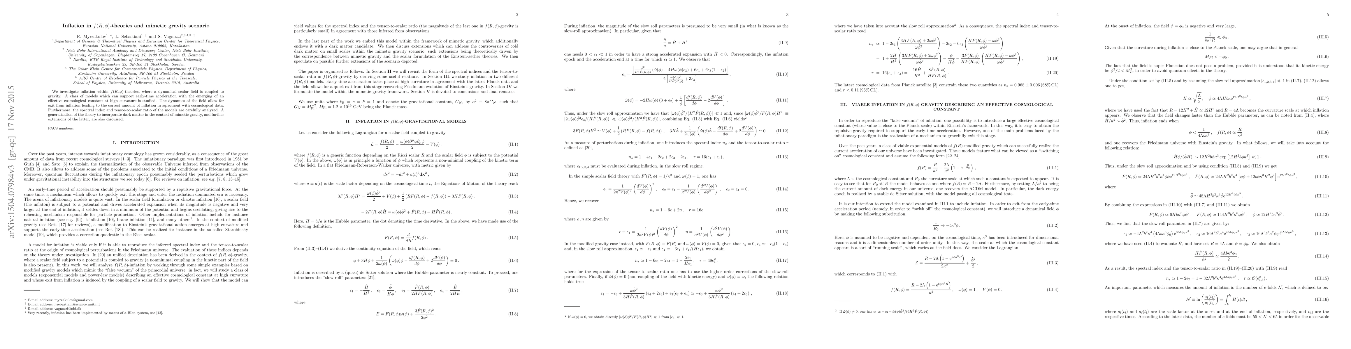 This paper explores inflation in $f(R,\phi)$-theories, where a dynamical scalar field drives early-time acceleration, leading to a cosmological constant at high curvature. The models support the correct amount of inflation consistent with cosmological data, while also analyzing spectral index and tensor-to-scalar ratio. Additionally, the paper extends the theory to incorporate dark matter through mimetic gravity.