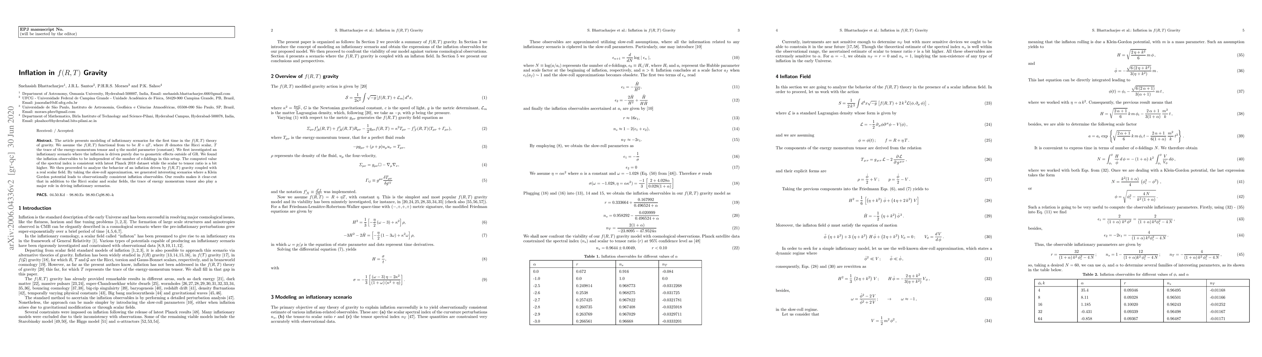 This paper models inflationary scenarios in $f(R,T)$ gravity, finding that the trace of the energy-momentum tensor, alongside the Ricci scalar and scalar fields, significantly influences inflation. The study reveals that $f(R,T)$ gravity can produce observationally consistent inflation observables, consistent with the latest Planck data.