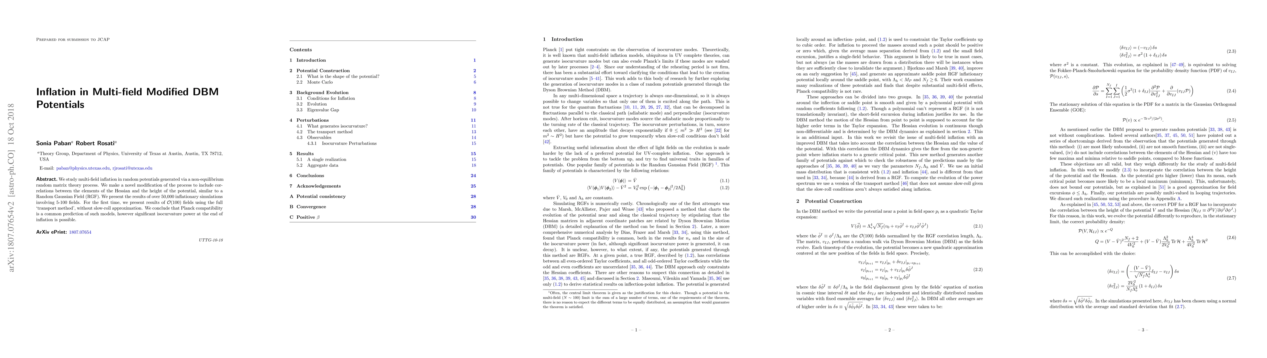 This paper investigates multi-field inflation in modified random matrix potentials, employing a novel method to incorporate correlations. It presents results from over 50,000 simulations of 5-100 fields, revealing that Planck compatibility is typical but significant isocurvature power may arise.