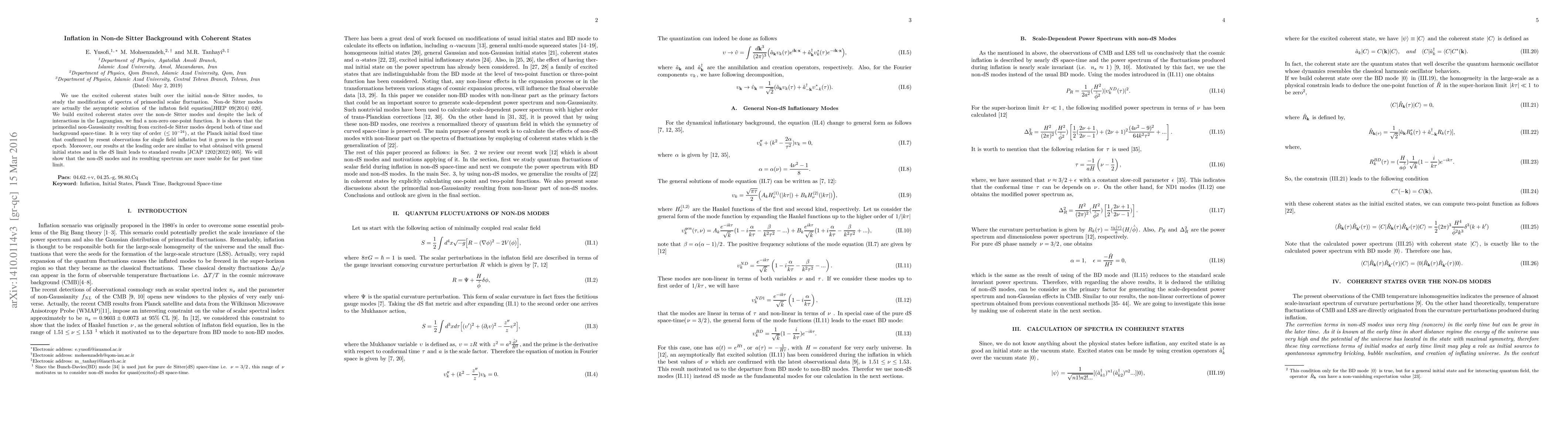 Researchers studied inflation in non-de Sitter backgrounds using coherent states, finding a tiny primordial non-Gaussianity that grows over time.