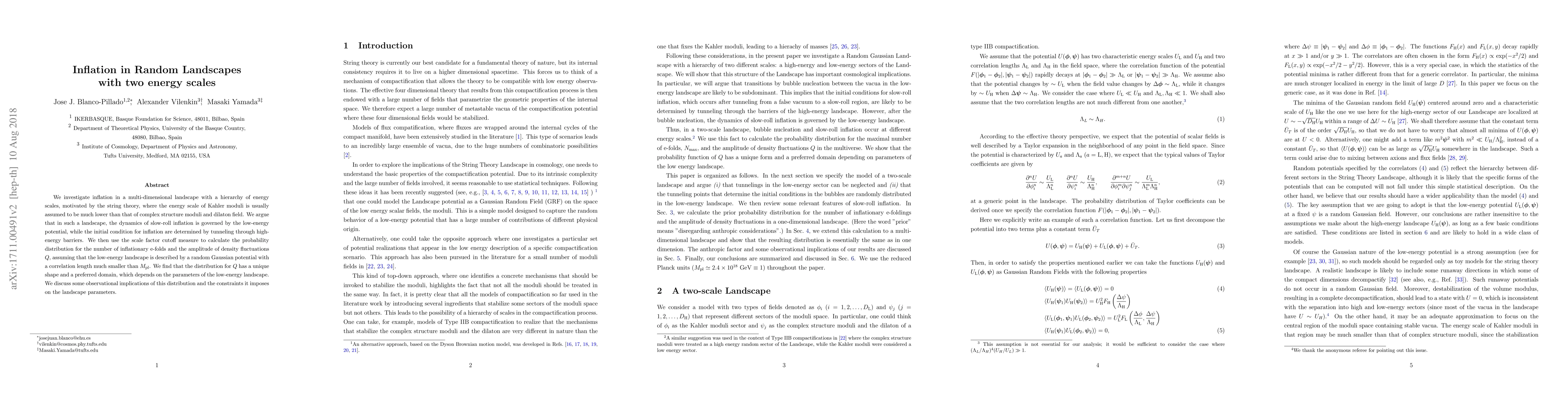 This paper explores inflation in a string theory landscape with distinct energy scales, arguing that slow-roll dynamics are driven by low-energy potentials while high-energy barriers set initial conditions. It calculates the probability distribution for inflationary e-folds and density fluctuation amplitude using a random Gaussian potential, finding a unique distribution shape that imposes observational constraints on landscape parameters.