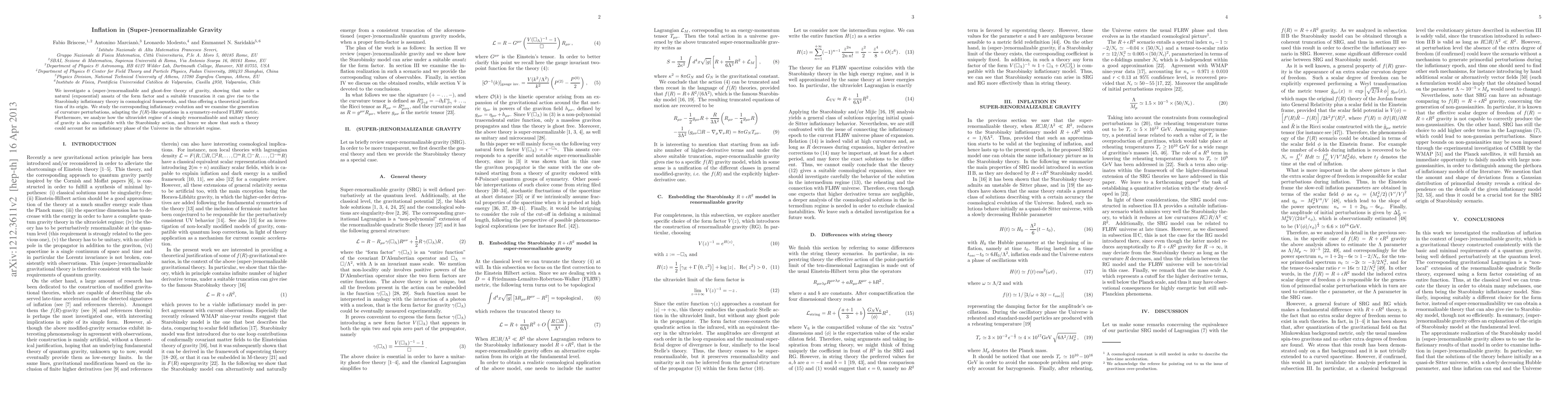 This paper explores a (super-)renormalizable and ghost-free gravity theory, demonstrating its potential to generate the Starobinsky inflationary model through a suitable ansatz and truncation. It also investigates the generation of curvature perturbations and confirms the compatibility of the ultraviolet regime of a simply renormalizable theory with the Starobinsky action, suggesting it could explain an inflationary phase in the universe's early stages.