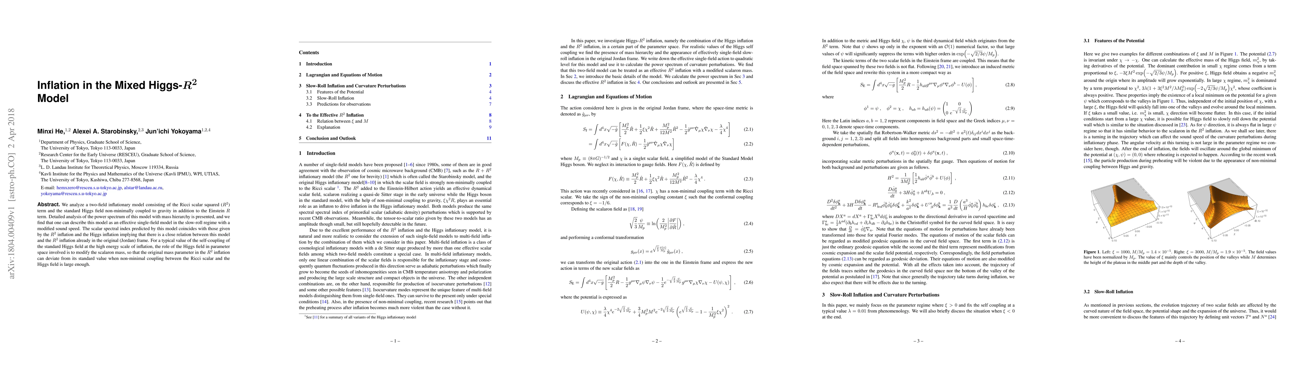 This paper explores a two-field inflationary model combining the Ricci scalar squared ($R^2$) and the Higgs field non-minimally coupled to gravity. It finds that the model can be effectively described as a single-field inflation with a modified sound speed, and its scalar spectral index aligns with $R^2$ and Higgs inflation models.