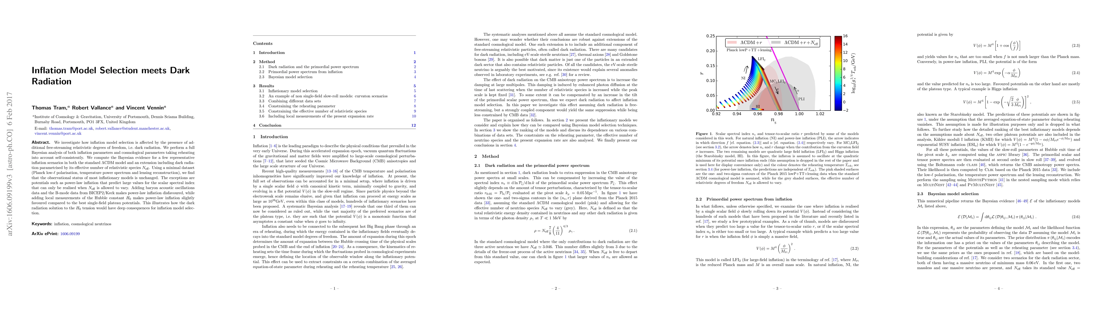 This paper examines how inflation model selection is influenced by the presence of dark radiation, finding that most inflationary models remain unaffected. However, models like power-law inflation, which predict large scalar spectral indices, are only viable when dark radiation is considered, and additional data can either disfavor or slightly favor these models.