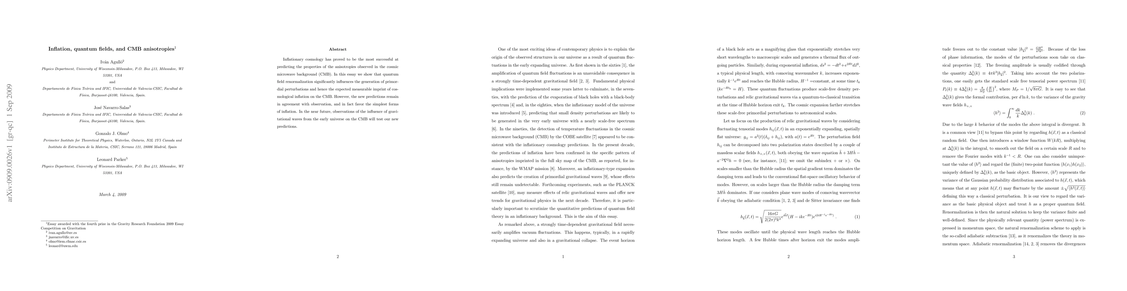 This paper demonstrates that quantum field renormalization impacts the generation of primordial perturbations during inflation, influencing CMB anisotropies. Despite these influences, the predictions remain consistent with observations and favor simple inflationary models, with future gravitational wave observations set to test these findings.