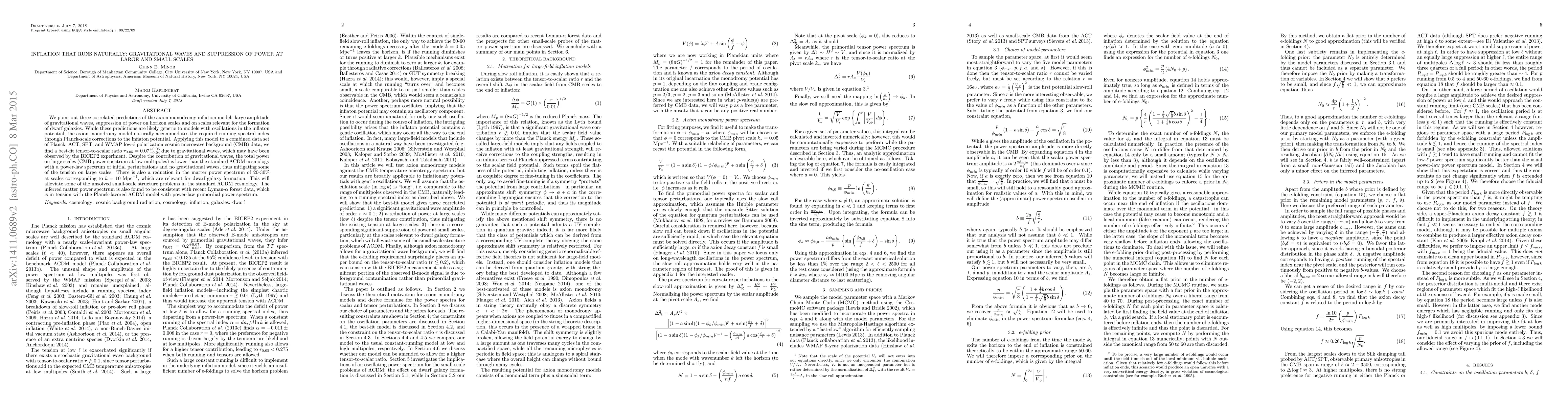 We point out three correlated predictions of the axion monodromy inflation model: large amplitude of gravitational waves, suppression of power on horizon scales and on scales relevant for the formation of dwarf galaxies. While these predictions are likely generic to models with oscillations in the inflaton potential, the axion monodromy model naturally accommodates the required running spectral index through Planck-scale corrections to the inflaton potential. Applying this model to a combined data set of Planck, ACT, SPT, and WMAP low-$\ell$ polarization cosmic microwave background (CMB) data, we find a best-fit tensor-to-scalar ratio $r_{0.05} = 0.07^{+0.05}_{-0.04}$ due to gravitational waves, which may have been observed by the BICEP2 experiment. Despite the contribution of gravitational waves, the total power on large scales (CMB power spectrum at low multipoles) is lower than the standard $\Lambda$CDM cosmology with a power-law spectrum of initial perturbations and no gravitational waves, thus mitigating some of the tension on large scales. There is also a reduction in the matter power spectrum of 20-30\% at scales corresponding to $k = 10~{\rm Mpc}^{-1}$, which are relevant for dwarf galaxy formation. This will alleviate some of the unsolved small-scale structure problems in the standard $\Lambda$CDM cosmology. The inferred matter power spectrum is also found to be consistent with recent Lyman-$\alpha$ forest data, which is in tension with the Planck-favored $\Lambda$CDM model with power-law primordial power spectrum.
