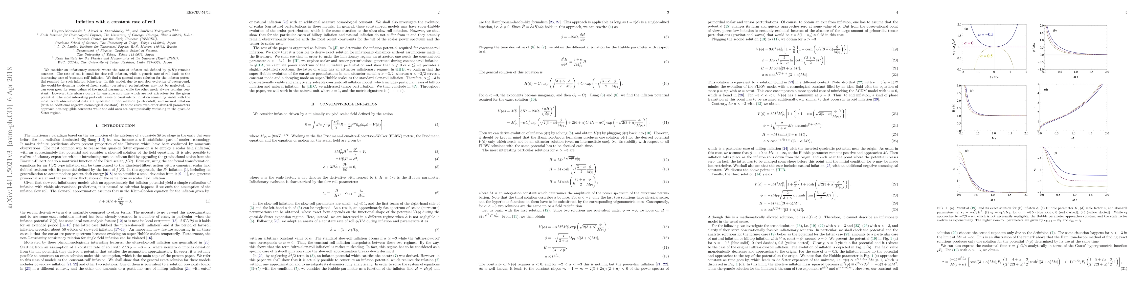 This paper explores the "constant-roll" inflationary model where the inflaton's roll rate remains constant, leading to a general exact solution for the inflaton potential. It highlights that this model can produce growing scalar perturbations, which are typically neglected in slow-roll inflation scenarios.